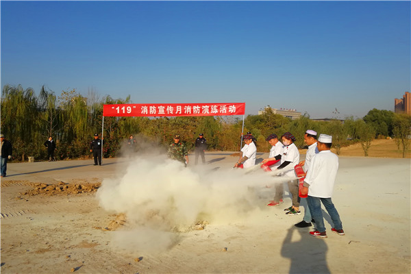 根据学校“119”消防宣传月活动的有关安排,11月9日下午,我校保卫处邀请鼓楼消防大队孟家沟中队的警官,并联合学生工作处、后勤服务管理中心对食堂、宿舍、安保等服务保障工作人员开展了消防安全知识培训及灭火演练活动。