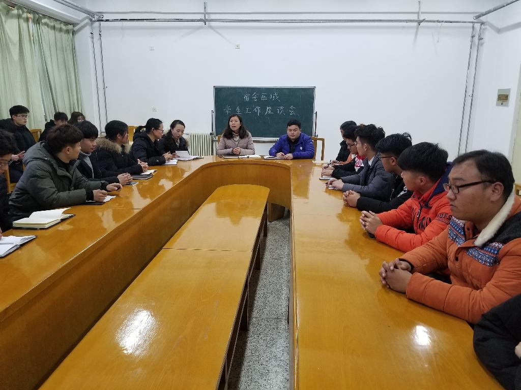 座谈会上,安莹副处长安莹副处长及宿管中心老师和同学们亲切交流,了解学生的各方面情况。学生代表积极踊跃发言,从住宿条件、安全管理、卫生检查、日常维修、晚修检查、公共设施等方面反映了很多问题,提出了许多意见和建议。安莹副处长首先对学校下一步宿舍区域改造及规划进行了说明,对近期公寓管理提出的几项新要求进行了通报,并针对学生们提出的问题一一进行了现场解答,对于学生反映的宿舍维修问题,现场对个区域主管进行了安排落实。安处长表示,学工处将对同学们的意见和建议进行分类整理,与相关部门配合尽快予以解决。安处长强调,习近平总书记在参观淮海战役纪念馆时说,淮海战役的胜利是人民用小推车推出来的,而我们宿舍的美好生活也是靠同学和宿管中心的宿妈们一点一滴来精心打造的,宿管中心将继续搭建学生公寓与学生建言献策的无障碍渠道,及时帮助学生排忧解难,真正解决学生住宿、生活上的问题,做学生的贴心宿妈,同时希望同学们理解宿管阿姨的工作,配合学校要求,从整理寝室、整理自我开始,整理出精彩的人生。