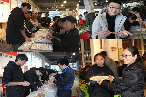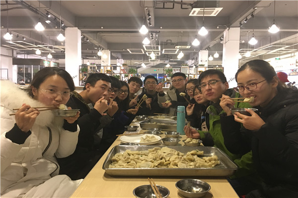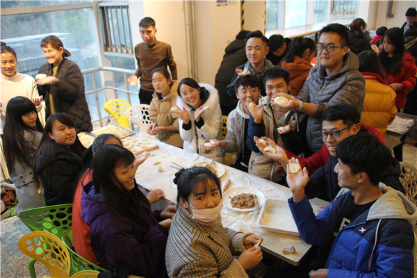 在愉悦、欢乐的氛围中,一盘盘热气腾腾的饺子被端上了餐桌,辅导员老师们亲自为同学们分饺子。吃着香喷喷的饺子,大家感受到了青春的快乐和集体的温暖,更感受到中国传统节日的魅力。