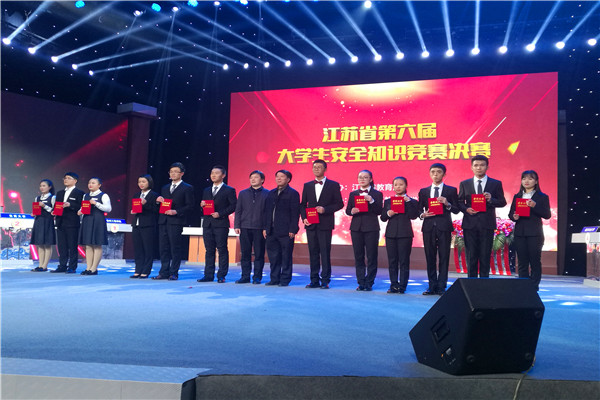 12月24日下午,由江苏省教育厅主办、江苏省高教保卫学会承办的第六届大学生安全知识竞赛决赛暨颁奖典礼在江苏电视台教育频道举行。我校化学工程学院李路雨、季延丽,信息与电气工程学院张代泽三位同学团结合作,沉着应战,经过必答、抢答、问答和风险题四个环节的激烈比拼,最终获得本届大学生安全知识竞赛专科组二等奖。