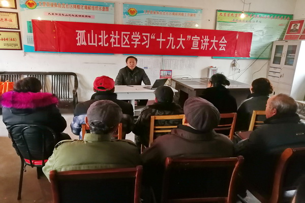 首先,宣讲在社区会议室进行,由孤山北社区主任张桂兰主持,孤山北社区党支部的党员参加。化工学院总支书记季剑波从十九大的主题和主要成果、党的指导思想、历史性成就和历史变革、新时代、社会主要矛盾、两个阶段、经济社会发展和党的建设等八个方面,对十九大精神进行了深入解读。76岁老党员表示:“跟着党走,心更定,步更稳!”各党支部书记开展座谈会,与社区党员群众畅谈十九大报告与百姓相关的内容,解答社区党员群众关于十九大主题等问题。会后赠送十九大相关书籍、笔记本等用品。