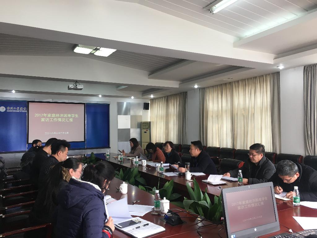 会上,学工处、团委首先就新学期学生返校统计工作、日常管理工作、宿舍管理工作、就业工作、辅导员职业技能大赛选拔工作、心理健康教育工作、团学活动开展等工作依次进行了布置和安排。随后,各二级学院学管负责人逐一汇报了面向江苏省内7个城市31个县区167个乡镇256个村的281户家庭经济困难学生走访慰问工作,从学院拟定走访对象方案介绍,到走访过程展示,再到走访期间的心得与体会,都进行了内容丰富、图文并茂、感情真挚的分享与交流,内容涉及走访家庭的贫困原因、受助需求、当地给予资助情况以及真实家庭情况,为我校推进精准资助工作提供了较为详实、可靠的第一手参考资料。