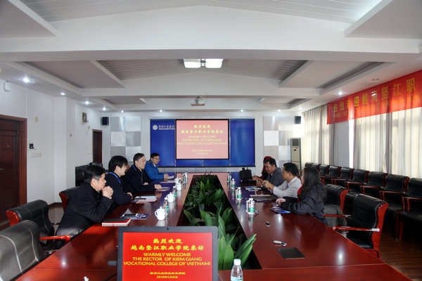 近日,越南坚江职业学院书记兼校长Nhan Thanh Liem教授一行三人访问了我校,随行的有国际交流处处长Le Quang Nha和酒店管理系主任Nhung。我校党委书记祝木伟、副院长张芳儒会见了来宾,机电工程学院院长吉智、工商管理学院院长张恒中、外事办副主任王建华,以及在我校交流学习的越南坚江职业学院教师代表Niki参加了会谈。