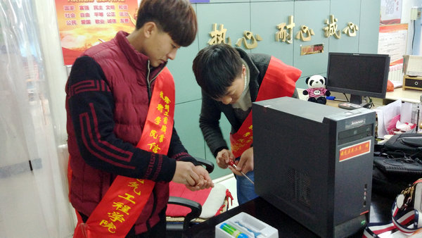 前期经过简单培训的志愿者们携带专业的维修工具有序进入社区居民家中,针对电脑系统、网络使用等问题,进行认真仔细的核查和修理,同时热情解答了居民在电脑使用方面存在的问题,并向居民普及了一些电脑使用和维护的知识等。此次志愿服务共计为响山社区居民维护清理了60多台电脑,为120多位居民普及了电脑使用常识,社区居民对志愿者们热情积极的服务和帮助给予了高度的评价。