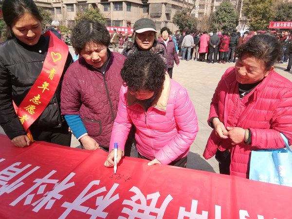 社区是人民群众安居乐业的幸福家园,在国际妇女节即将到来之际,材料青年志愿者们在雅园社区开展了一场以“和美家庭、乐活人生”为主题的反家暴宣讲活动。材料青年们拿着社区宣传册,对社区居民宣讲如何健康饮食、科学锻炼的良好生活习惯,并为社区居民免费测量血压;志愿者们又结合民生政策、妇女儿童权益法律法规进行宣讲,反对家庭暴力,维护妇女权益,构建和谐家庭。宣讲结束后,不少居民表示:“高校学生进社区,不仅是打扫了卫生美化环境小能手,更是为社区居民的精神生活带来营养小帮手,这真是践行社会主义核心价值观的生动课堂。”居民们纷纷在红色的宣传条幅上签名,为和谐家园锦上添花。