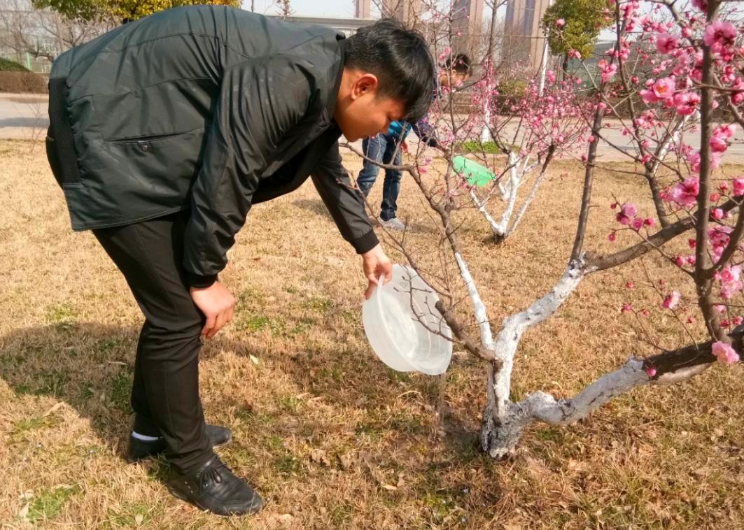 自主学习之后,材料工程学院青年志愿者们三五成群相互结对,拿着自己亲手制造的塑料盆端、端上满满的清水,走向校园为树木送去滋养的甘泉,给校园更添一抹生机活力。他们还发起了“校园树木小护法”的树木认养活动,为小树起上亲切的名字,植绿、兴绿、爱绿、护绿、养绿、享绿渐成风尚。
