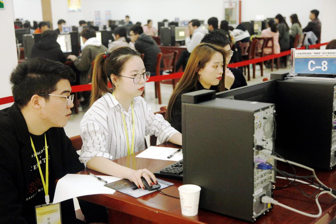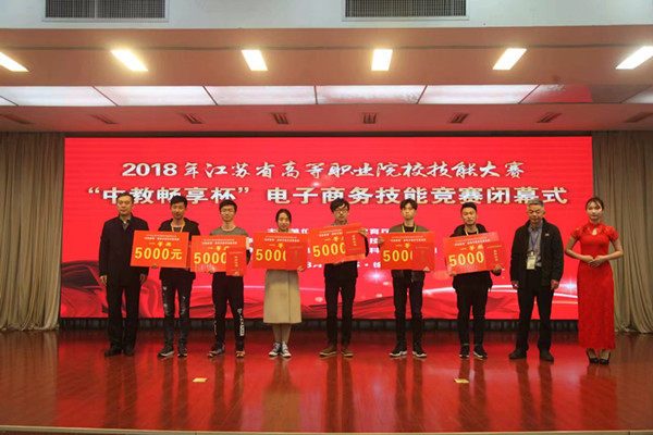 为推动电子商务从业人员整体水平的提升,激发大学生电子商务创业热情,3月25日,由江苏省教育厅主办、我校承办、中教畅享(北京)科技有限公司冠名的“中教畅享杯”2018年江苏省高等职业院校电子商务技能竞赛在我校图书馆隆重举行。本次大赛共有来自全省56所高职院校的224名学生报名参赛,参赛队伍数量位列全省所有技能竞赛项目的第3位,受到了省内高职院校的积极关注。我校自2016年以来连续三年承办该项赛事,浓厚的竞技氛围,专业的技术支持,公正的执裁评比,细致的组织服务,得到了参赛院校师生的一致好评。