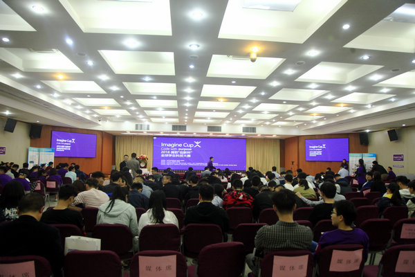 3月28日,2018 微软“创新杯”全球学生科技大赛徐州赛区总决赛暨颁奖典礼在我校图书馆报告厅隆重举行。本次活动由鼓楼区委、区政府和微软(中国)主办,鼓楼云创科技园等与我校联合承办。徐州市委常委、组织部长徐大勇,微软(中国)首席技术官韦青,鼓楼区委书记龚维芳、区长罗德清,区委常委、组织部长杨中良,区委常委、副区长李强,副区长缪长宗及市、区相关部门负责人,我校党委书记祝木伟、副院长鲍桂楠等出席活动。活动现场气氛热烈,共集聚评委嘉宾、创新团队和各类媒体等近300人参与。