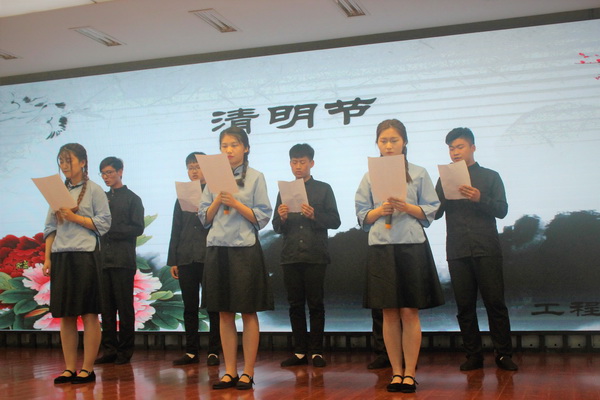 工程造价171班同学们的现代散文《我们的清明》更是激发了全体学生爱党爱国的热情,抒发了对党和祖国的无限热爱。最后,数字媒体的171班的“女子们”为我们带来的是朱相远先生1999年题写的《中华世纪坛序》,它代表了我们不屈不挠的精神和华夏数千年的文明,同时也编织出学生们心中的对祖国崇敬缅怀之情,表达了她们勇于挑起历史重任的决心。