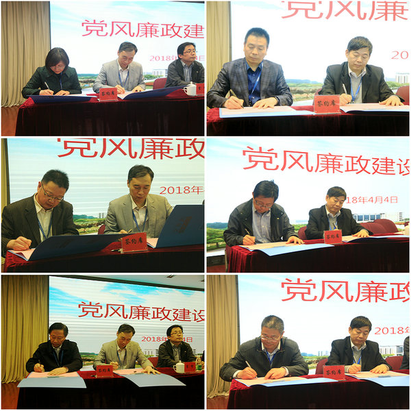 落实党风廉政建设主体责任,会上,党委书记祝木伟同志、院长张登宏同志分别与党委委员代表、分管院领导代表、党委行政职能部门负责人代表、基层党组织书记代表、二级学院院长代表签订了2018年党风廉政建设责任书。