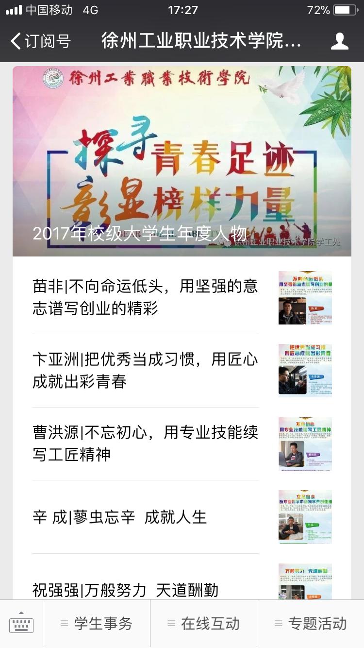 为深入挖掘和宣传表彰本年度大学生先进典型,充分发挥先进典型的示范引领作用,在全校营造促进大学生健康成长,奋发成才的良好环境,学工处组织开展了2017年校级大学生年度人物评选活动。