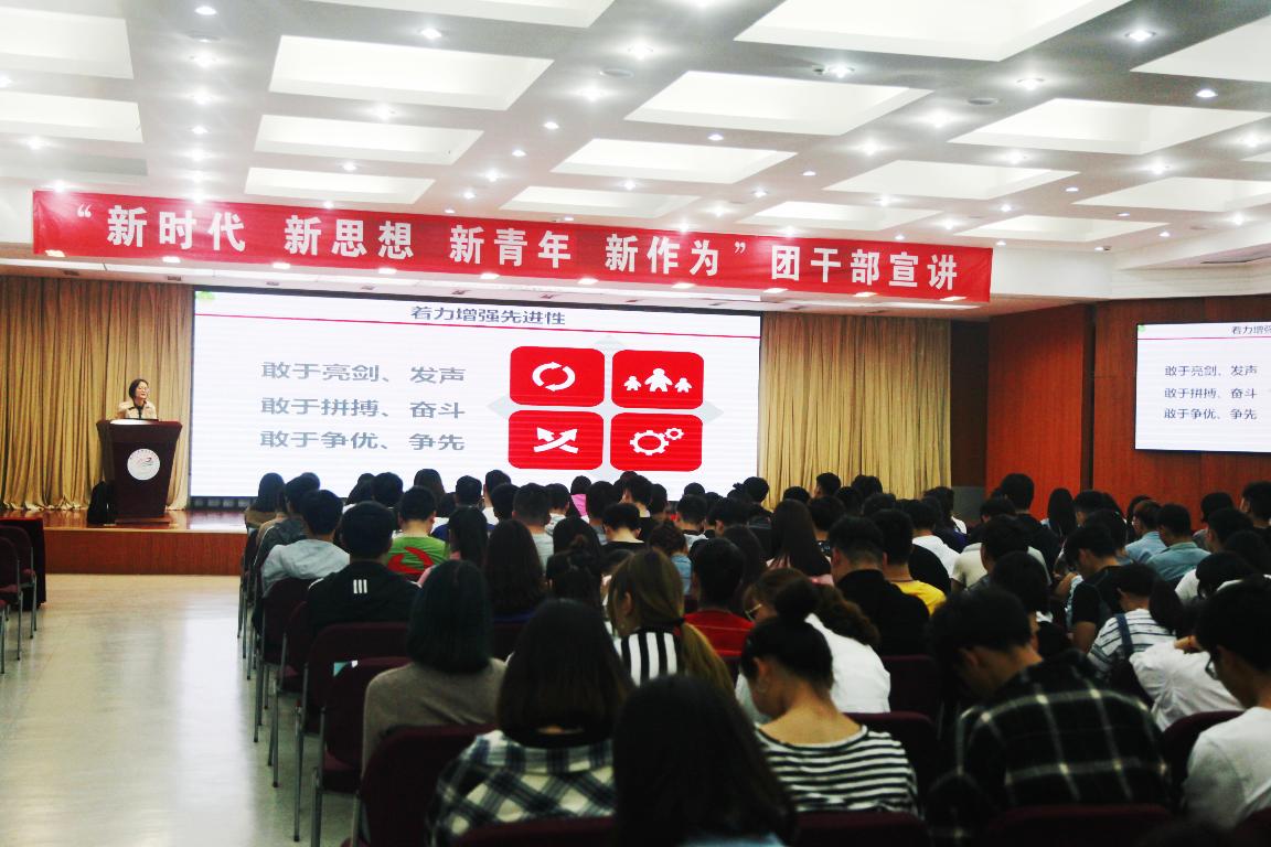此次活动以深入学习宣传贯彻党的十九大精神为背景,以习近平新时代中国特色社会主义思想为指引,结合《关于在全省共青团组织中广泛建立“团员学习社”“青年学习社” 开展“青年大学习”行动的通知》文件要求,团委书记张妍妍,副书记庞世华分别向各二级学院副院长、团总支书记、辅导员、团支部书记和学生会、社团联合会、广播站、自管会、校卫队等主要学生干部开展宣讲活动,五百余名师生听取了宣讲。