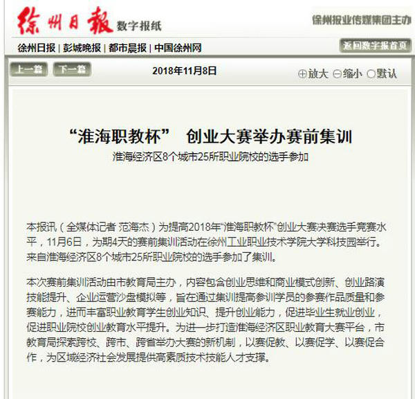 新闻来源:徐州日报(2018年11月8日)