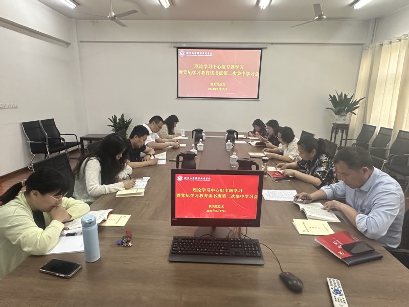 5月17日,机关党总支在行政楼346会议室召开理论学习中心组专题学习暨党纪学习教育第二次专题读书班学习会,党总支委员、党支部书记参加学习,会议由党总支书记陈令霞主持。