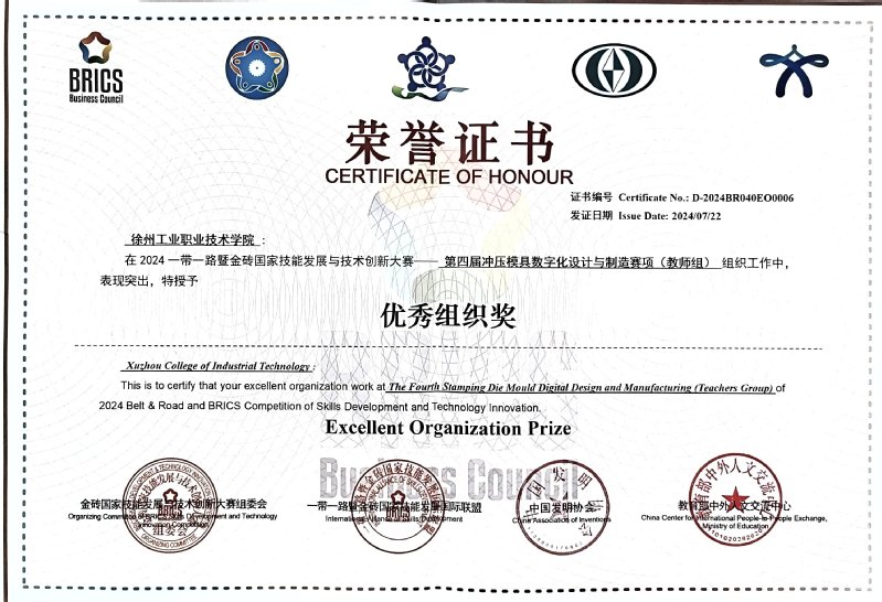 近日,一带一路暨金砖国家技能发展与技术创新大赛冲压模具数字化设计与制造决赛在漳州职业技术学院圆满落幕,来自全国各省市32支代表队参赛。此次比赛中,我校荣获优秀组织奖,我校机电工程学院教师张超彦和张丽霞在大赛中展现出色实力,双双在教师组比赛中荣获二等奖,斩获2枚银牌。