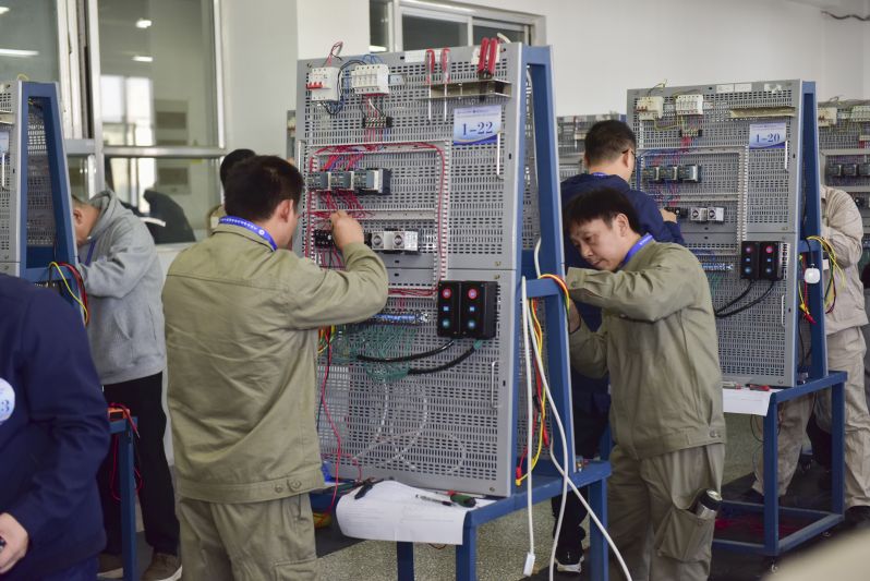 本次竞赛由理论测试和实操技能两部分组成,实操技能包含PLC编程及接线实操,全面考察参赛选手的专业理论功底和技能水平。竞赛中,选手们全神贯注,以饱满的精神、娴熟的技能,有条不紊地完成各项操作。他们奋力拼搏,赛出了风格,赛出了水平,充分展现了后勤职工勤于钻研、爱岗敬业、精益求精的工匠精神。我校电工闫洪建在比赛中从容自信,技术娴熟,凭借出色的表现脱颖而出,获得全省第三名的好成绩。