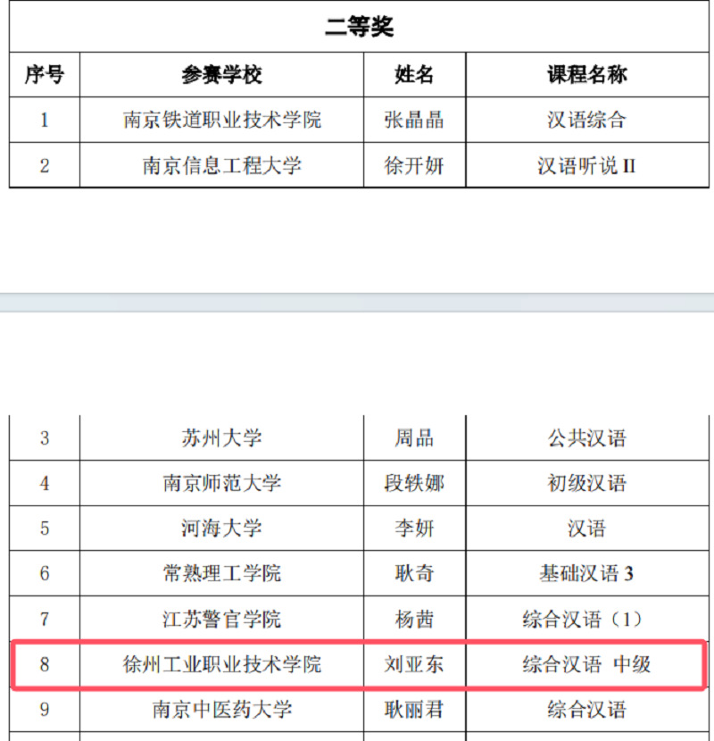 11月3日,2024年江苏高校外国留学生教学观摩比赛复赛在南京落下帷幕。经过激烈的角逐,我校对外汉语教师刘亚东主讲的《中级综合汉语》课程获得二等奖。