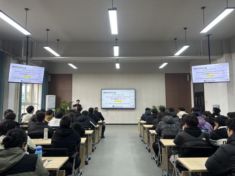 受邀专家先后开展了四场学术盛会,陈伟院士作题为《芯片的发明与发展、机遇与挑战》的学术报告,盖鑫磊和王俊峰教授作题为《大气二次气溶胶的液相氧化生成》的学术报告,高飞教授作题为《负载型稀土铈基尾气净化催化剂的设计、制备及其催化反应机制》的学术报告,徐磊磊教授作题为《低温高效Ni基CO2甲烷化催化剂的设计及反应机理研究》的学术报告。四场学术报告不仅提供了宝贵的学术资源和研究思路,同时也呈现了一堂精彩的教学示范课,老师们纷纷表示受益匪浅。