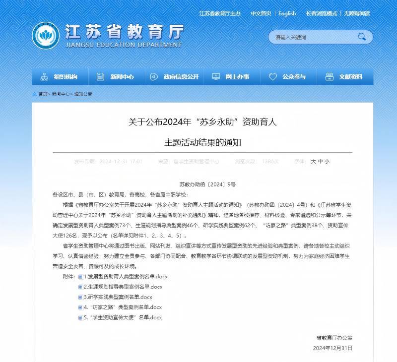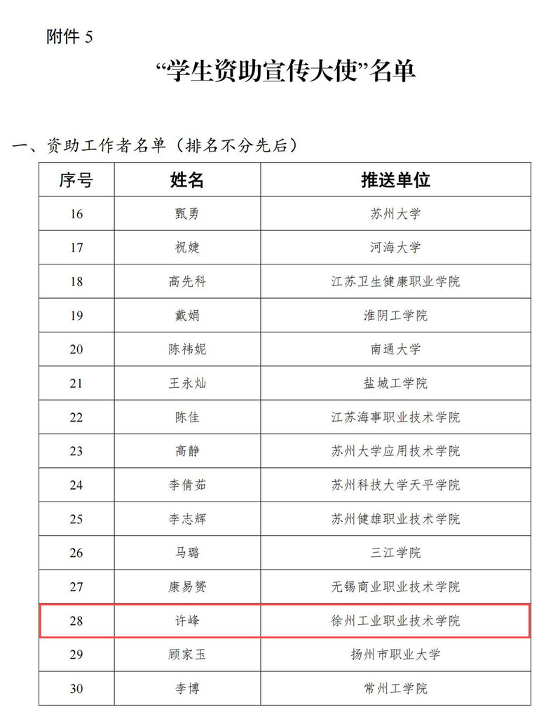 近日,江苏省教育厅正式公布了2024年“苏乡永助”资助育人主题活动的评选结果。我校在此次活动中表现突出,多个项目及个人荣获佳绩。其中,工商管理学院的“红心向党・感恩同行——传承淮海战役革命精神资助育人研学实践活动”案例荣获研学实践典型案例;化学工程学院的“织梦者行歌,资助育人谱华章”案例荣获“访家之路”典型案例。此外,学生工作处许峰老师荣获“江苏学生资助宣传大使”(资助工作者)称号,汽车工程学院新能源汽车2204班的黄浩楠同学荣获“江苏学生资助宣传大使”称号。