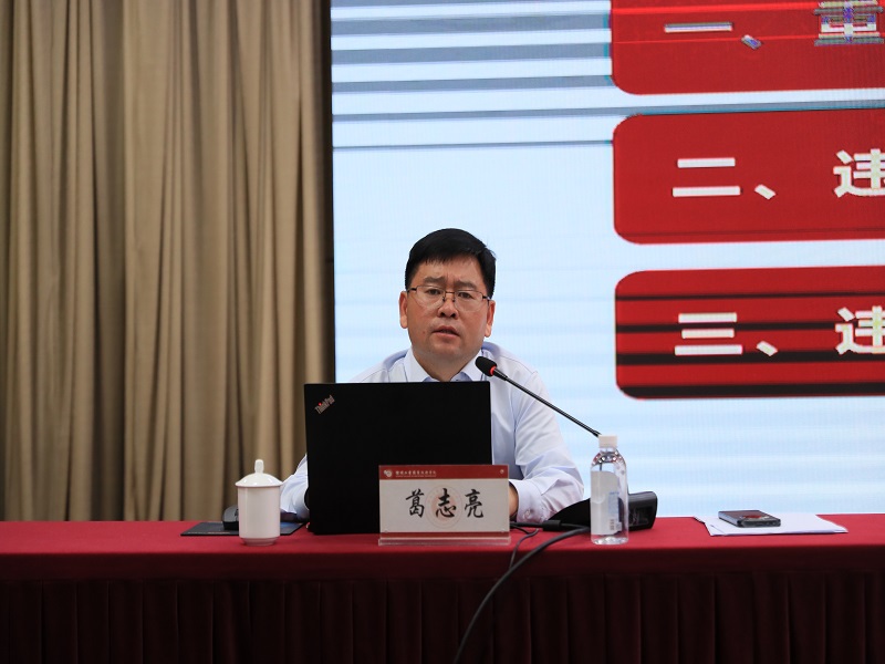 葛志亮讲授深入贯彻中央八项规定精神专题党课。葛志亮结合高校党建实际,重点围绕“中央八项规定精神主要内容”“违反中央八项规定精神问题情况”“违反中央八项规定精神案例剖析”三个方面,以深厚的理论功底、详实的实例数据、生动的案例分析,系统解读了中央八项规定精神的核心内涵与实践要求。他强调,党务工作者作为学校发展的“顶梁柱”,必须要守规矩,强作风,“管住嘴”“捆住手”“迈开腿”,时时刻刻绷紧纪律之弦,以更加扎实的作风推动服务师生、助力学校高质量发展等重点任务落地见效。