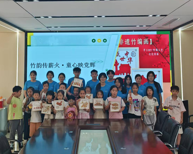 红色基因筑基,非遗文化润心。实践团以党建为引擎,将红色教育融入非遗实践:组织社区儿童学习淮海战役“一根小竹竿”支前故事,将红色基因根植童心。在实践团志愿者指导下,亲手制作蕴含坚韧品格的竹制工艺品,聆听生动党史故事,在指尖与耳畔的互动中感悟革命精神。活动巧妙融合传统竹编与红色教育,让儿童筑牢理想信念根基,爱党爱国的种子在幼小心灵悄然萌芽。
