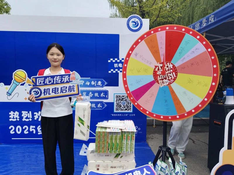 创意迎新,精彩添彩。迎新现场,创意活动精彩纷呈。幸运大转盘前,新生们满怀期待地转动转盘,赢取定制校徽、文创笔记本等小礼品,欢声笑语回荡在校园上空。由我校师生研发的迎新机器人“工小迎”,成为了现场的“明星”,它不仅能语音导航,还能与新生亲切互动,展现了我校在智能制造人才培养领域的优势,让新生充分感受到科技的魅力。